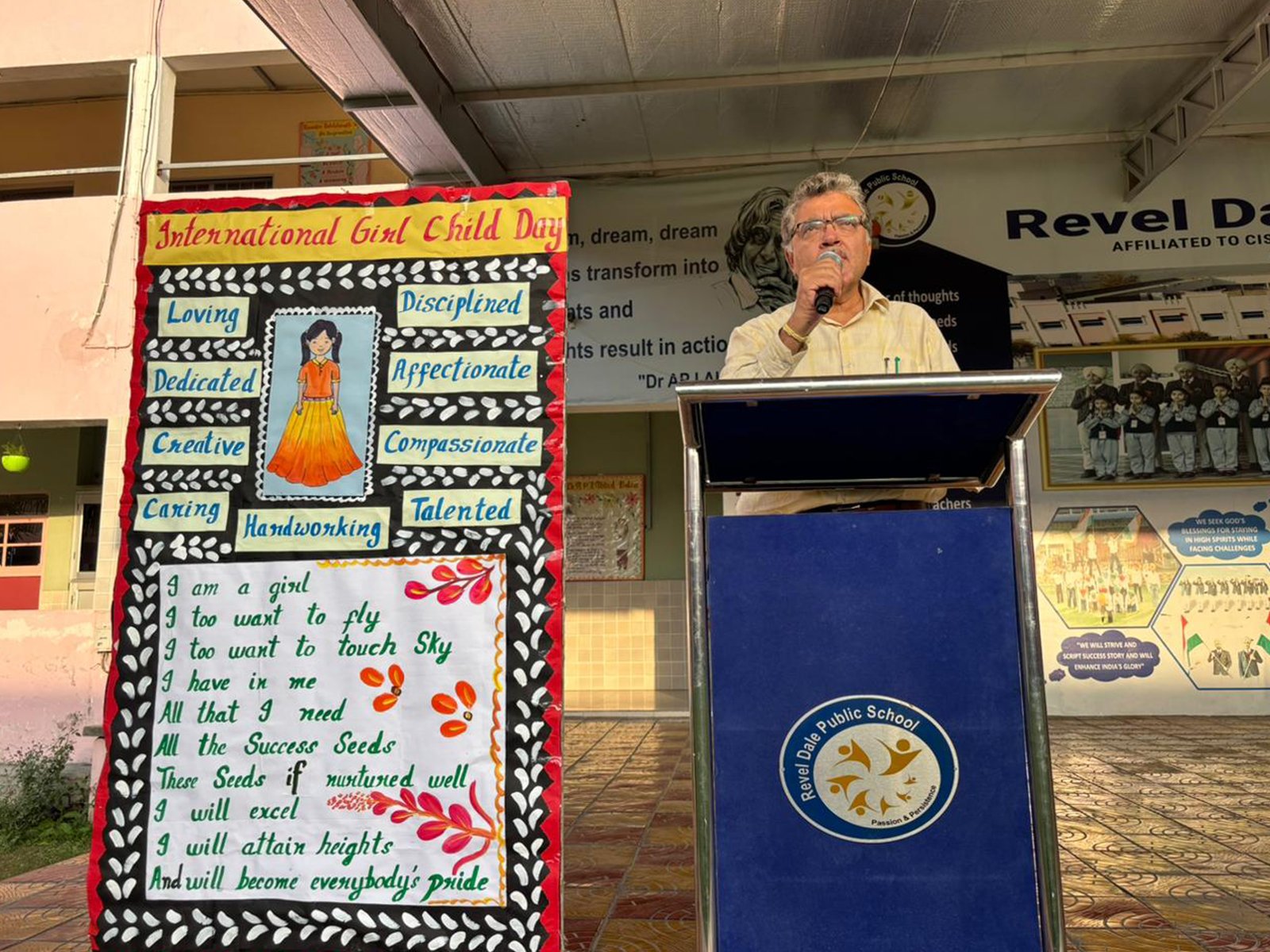 The purpose of commemorating International Girl Child Day at Revel Dale Public School was to make children understand that all women achievers in all spheres including Space Science, Sports, Literature, Education and Civil services deserve our adulation because they manage to carve their niche in this male dominated society despite countless odds. In the Indian society it is rare that girls are groomed for careers. Majority of the girls also reconcile with the societal norms and give up their urge to excel in this competitive world.