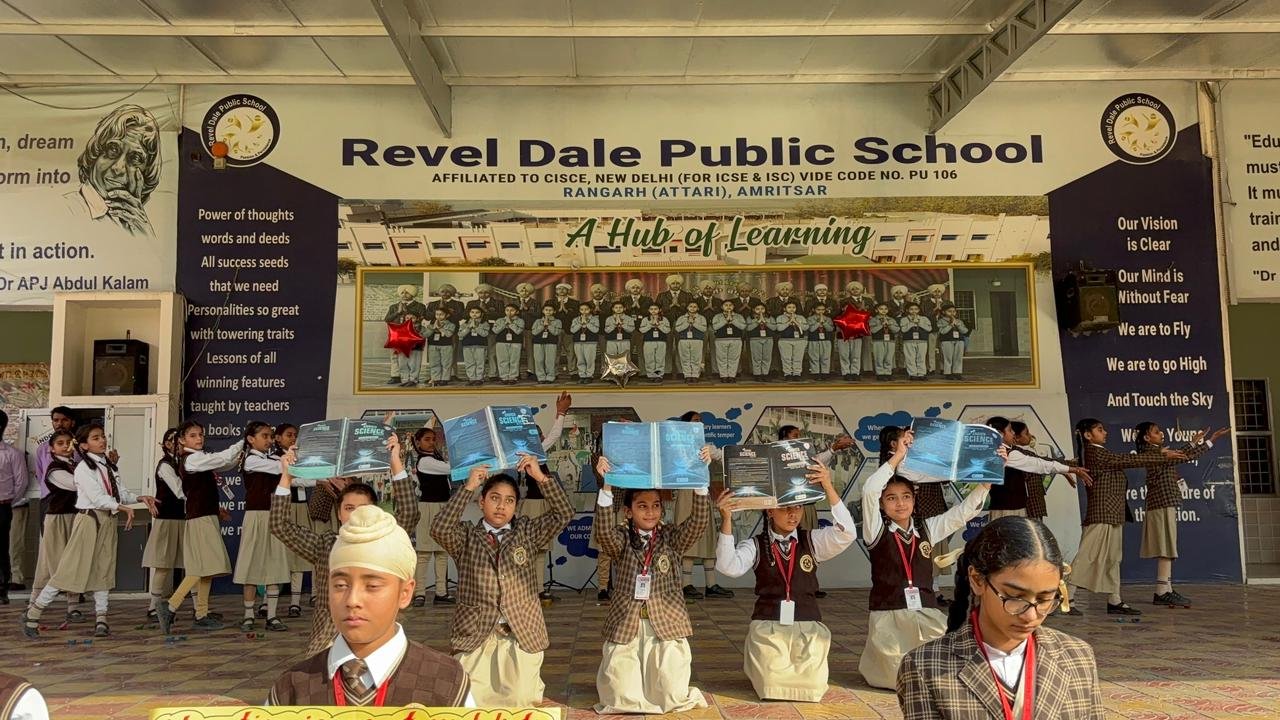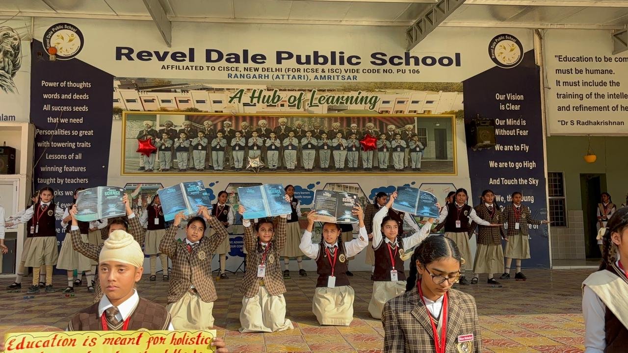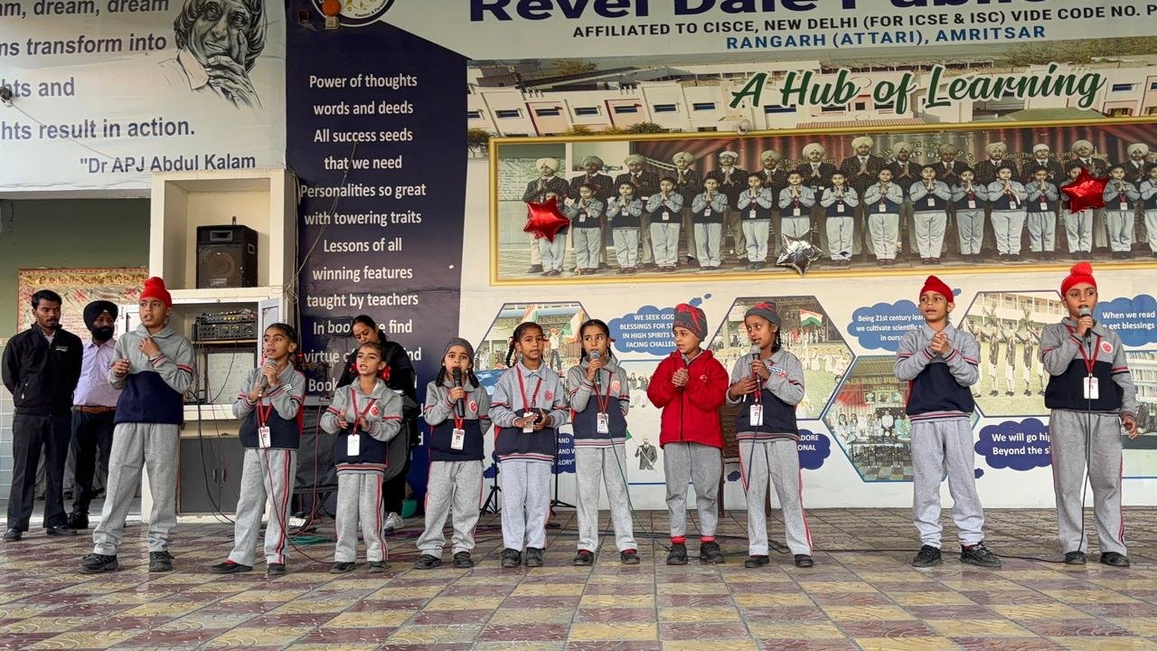 At Revel Dale Public School a number of educative values are transmitted to children through value based songs on daily basis. The school children listen to the songs which are based on different time tested and time honoured winning virtues. Young learners of all classes strengthen their value system through educative melodies as a lot of efforts is made by the music department of the school to nurture the students with time tested success elements and therefore in order to assess the students’ singing potential a singing competition was held at Revel Dale Public School on 13 November 2025 in which three teams studying in class UKG to 2nd Std participated. Almost 40 students participated in this competition. All the students were brimming with self confidence and self belief. Their singing was of top quality. All students were in key and sang with rapture and proper feel. They all looked highly expressive. Everybody was following the beat of the music as well as the rhythm. It was the three music teachers of the school who had prepared their teams. The competition was won by the team that was groomed by Ms. Rajbir Kaur. This competition released waves of inspiration in the ambience of the school.