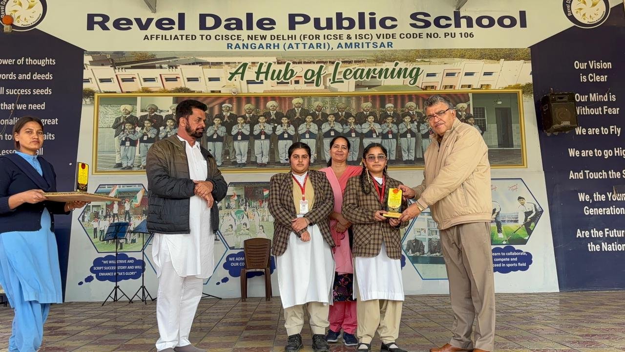 When efforts are made on children in a passionate manner, results always go beyond our expectations. This has been proved by two students of Revel Dale Public School who had participated in National Level Poetry Competition conducted by CISCE on the occasion of Teachers’ Day. These two students are Palakpreet Kaur (+1 ) and Shubhdeep Kaur (9th Class). A competition in which thousands of students have participated from the schools of every state of the country. Palakpreet Kaur got 2nd position in the category of class 11th and 12th students. Her poem on the theme “A Classroom Called life” articulates the feeling of the students in a subtle manner. This poem has a profound message for the students that they are to work with patience and negotiate with all the challenges with disciplined and preservance. The recognition that Palakpreet Kaur has been given will further motivate her to hone her writing ability further. Shubhdeep Kaur’s poem also has the same theme ie “A Classroom Called Life”. Her poem throws ample light on the kind of transformation that students experience in the hours that they spend in the classroom. Her poem says that in classroom we move from mistakes to learning ; from selfdoubt to confidence and from ignorance to enlightenment . The achievement of these two students bears vivid testimony to the fact that in the rural areas there is immense potential in the children. If this potential is ignited and properly channelized, the students can compete and succeed at the National Level. These two students were in competition with all the students studying in all schools affiliated to CISCE. With this achievement they have raised the confidence level of the students of the schools. The earnest endeavours the teachers of the school make on the students have converted this long cherished dream into reality. Now these students have broken the glass ceiling and in the coming days several more students of Revel Dale Public School will surely leave their glorious imprint in different competitions that are held at all the levels. Principal and Management Members of the school gave their blessings to Palakpreet Kaur and Shubhdeep Kaur.